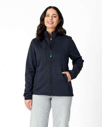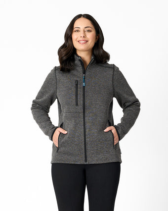 Smooth-face fleece, 4-way stretch for easy movement, designed for corporate style and functionality