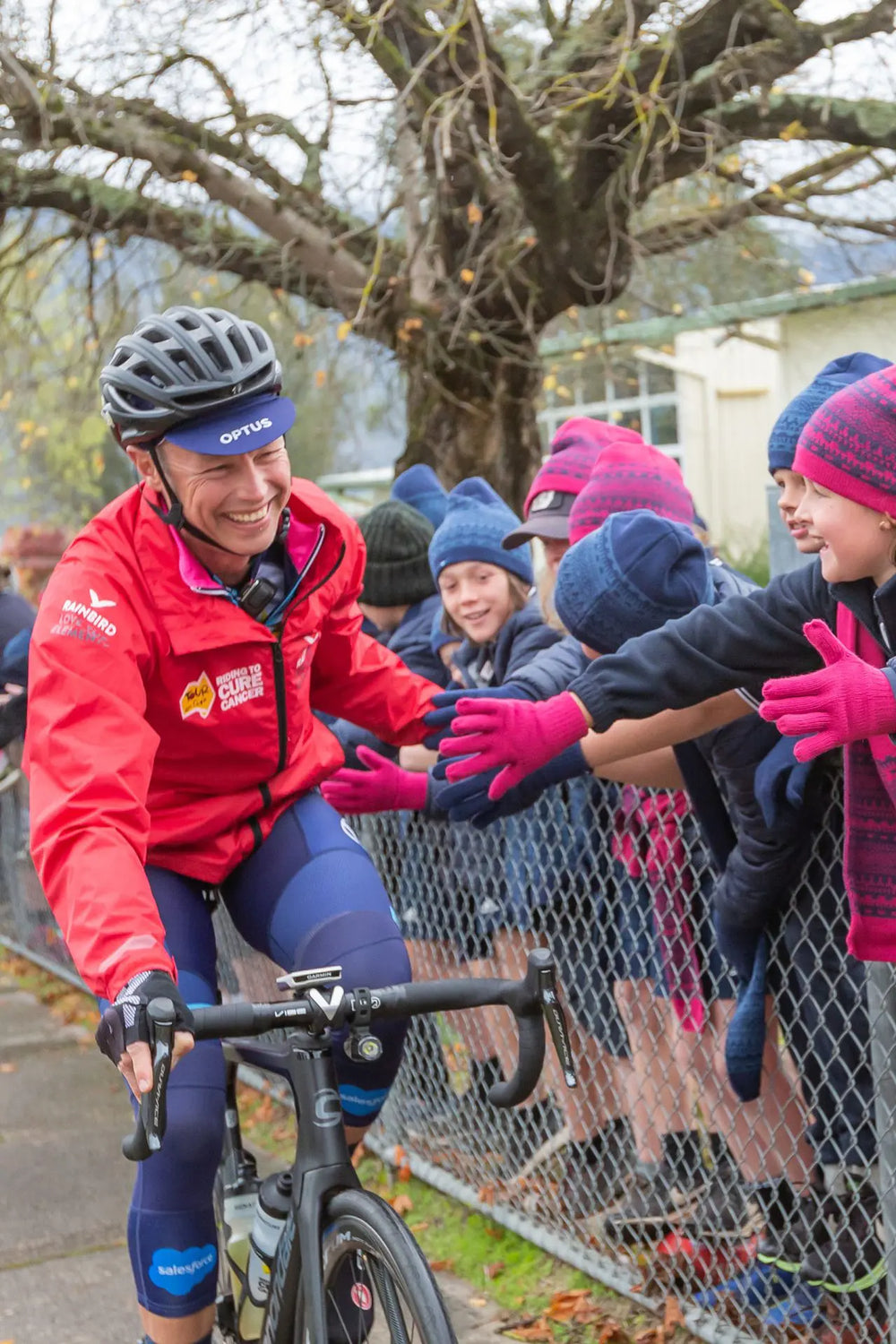For the past 11 years, we’ve worked in tandem on the Signature Tour, held annually in March. What began as simply providing branded jackets to the riders has grown into a partnership where Rainbird keeps both riders and crew warm and dry while they focus on their cause! We’ve also had the incredible opportunity to support Tour de Cure on their visits to local schools on the tour trail. Through donating branded apparel like beanies and gloves, we’ve been able to share the TDC message of “Be Fit, Be Healthy, Be Happy” with many students in communities along the trail. We’re proud to keep students cosy while they chase the mission of being health, fit and happy!