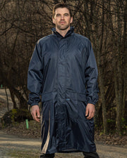 Our longest jacket yet keeps you dry while offering extra coverage. Featuring a fold away hood, large storage pockets, a two-way front zipper, and stretch cuffs for comfort, it’s designed to handle rainy days with ease..